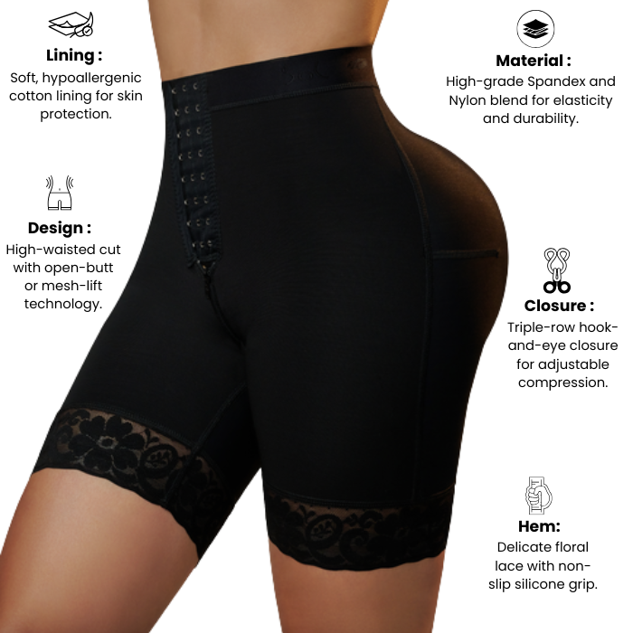 Using advanced high-compression technology, these shorts target the lower abdomen and waist to reduce inches instantly. The strategic stitching in the rear area creates a natural lifting effect, enhancing your glutes without padding.